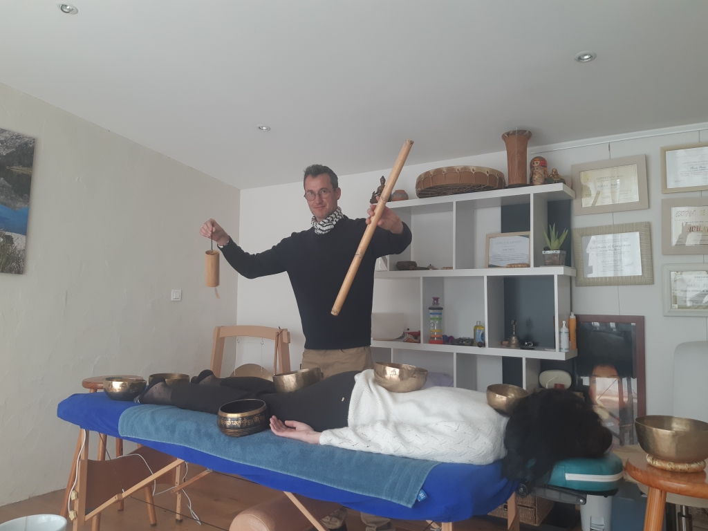 La formation au massage sonore, avec bols chantants tibétains, bols de cristal, (diapasons dans un 2eme temps) et autres instruments, s'adresse aux musiciens, aux thérapeutes et aussi à toute personne souhaitant utiliser ces belles vibrations sur son chemin de vie et de connaissance de SOI, Cette technique unique favorise de façon extraordinaire le lâcher-prise du receveur qui se retrouve plongé au coeur d'une vague sonore réalignant et harmonisant toutes les cellules de son corps.
